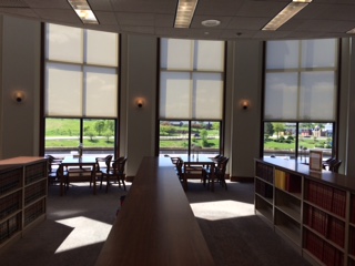The library is located on the 2nd floor at the south end of the DuPage County Judicial Center. It overlooks the pond which provides a great view year round. Work and reading areas are located by the windows allowing for natural reading light. There is seating available to over 40 persons. Each year upwards of 35,000-40,000 patrons use the library.